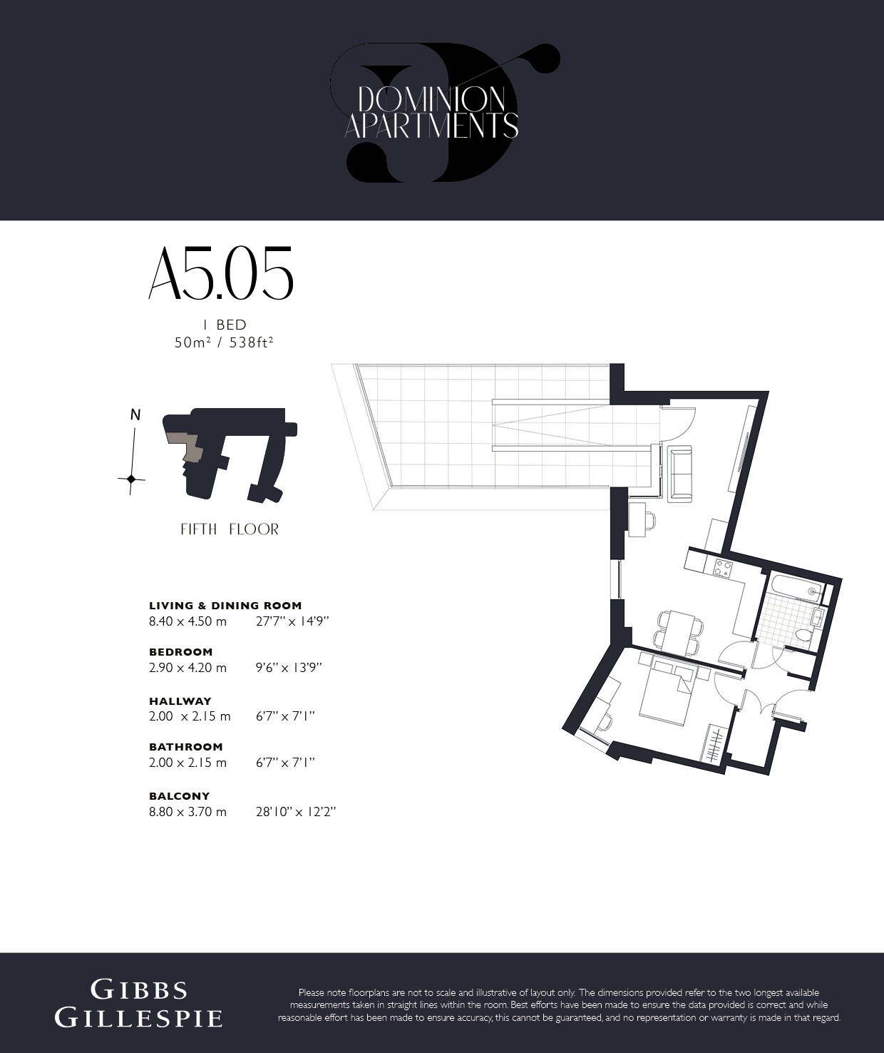 - 538 sq ft One Bedroom Luxury Fifth Floor Apartment