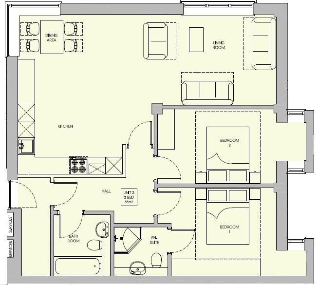 - 947 sq ft New Two Bedroom First Floor Apartment