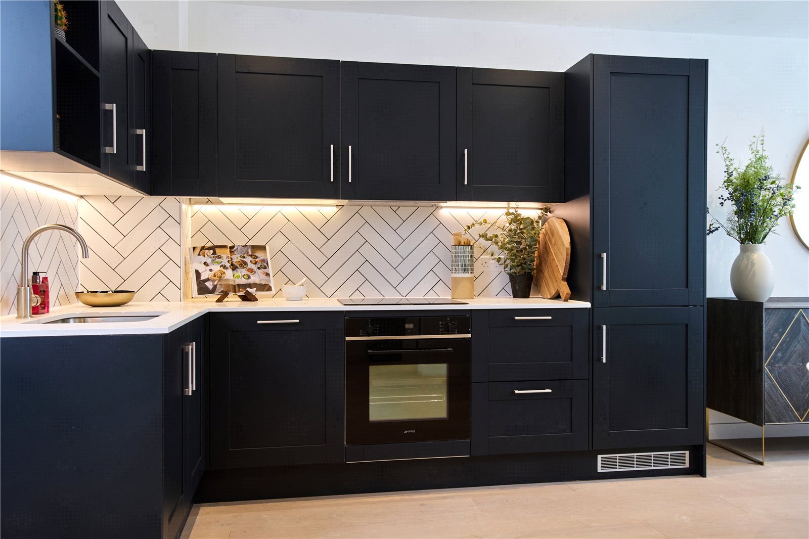 - Contemporary kitchen with composite stone worktops &