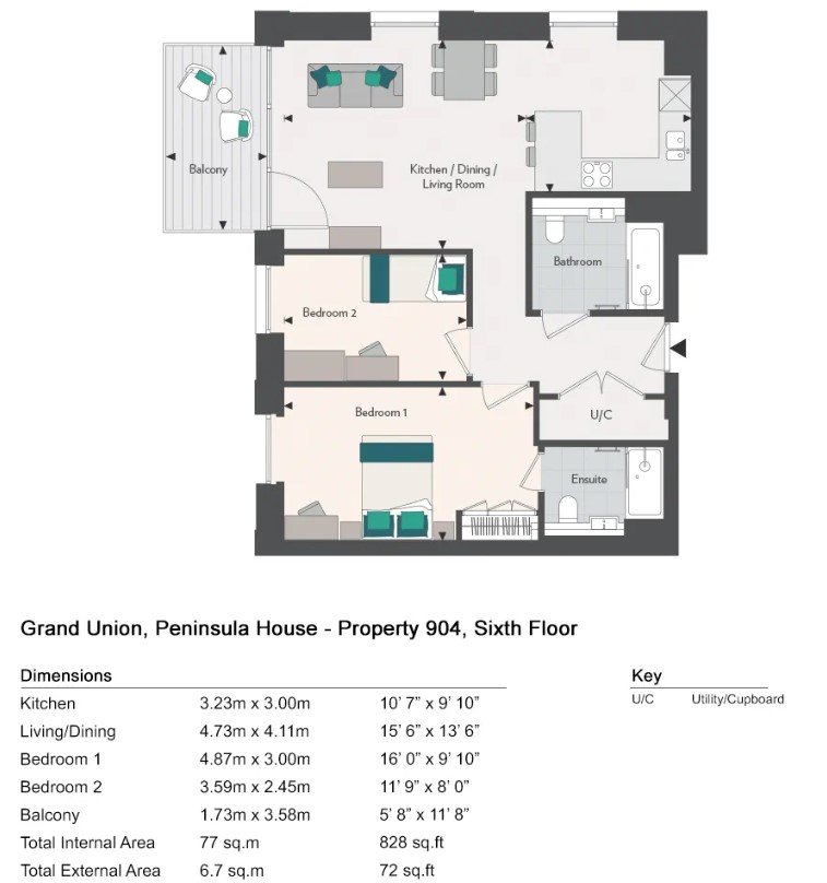 This stunning second floor 828 two bedroom, two bathroom sixth floor apartment with the advantage of a private balcony, set within Peninsula House Grand Union, one of West London's most exciting new developments. This thriving community is the ideal place to live, beautifully landscaped gardens, all with the convenience 24 hour concierge, Bowling Alley, residents lounge and on-site Nursery. A selection of Manhattan, one, two and three bedroom apartments are available, offering spacious, light-filled spaces with contemporary interiors, high quality fixtures and fittings and a modern colour palette. Just a five-minute walk from Grand Union, the Bakerloo Line runs through Stonebridge Park tube station, transporting you to Oxford Circus in 26 minutes. The 24-hour weekend tube makes commuting and going out much easier. Residents enjoy resort-style amenities within ‘The Lock’, including...