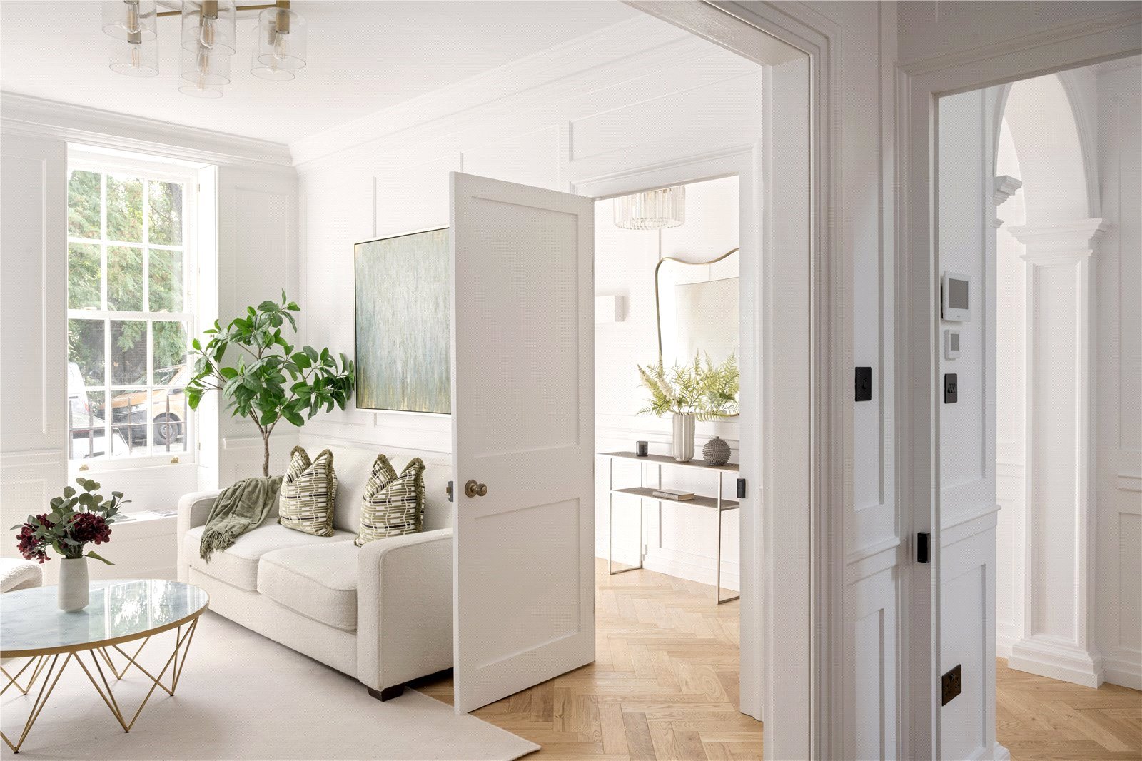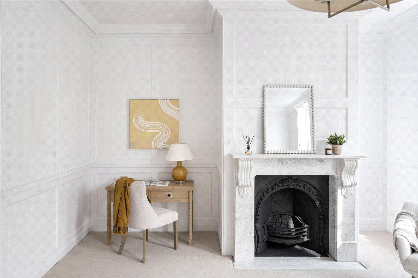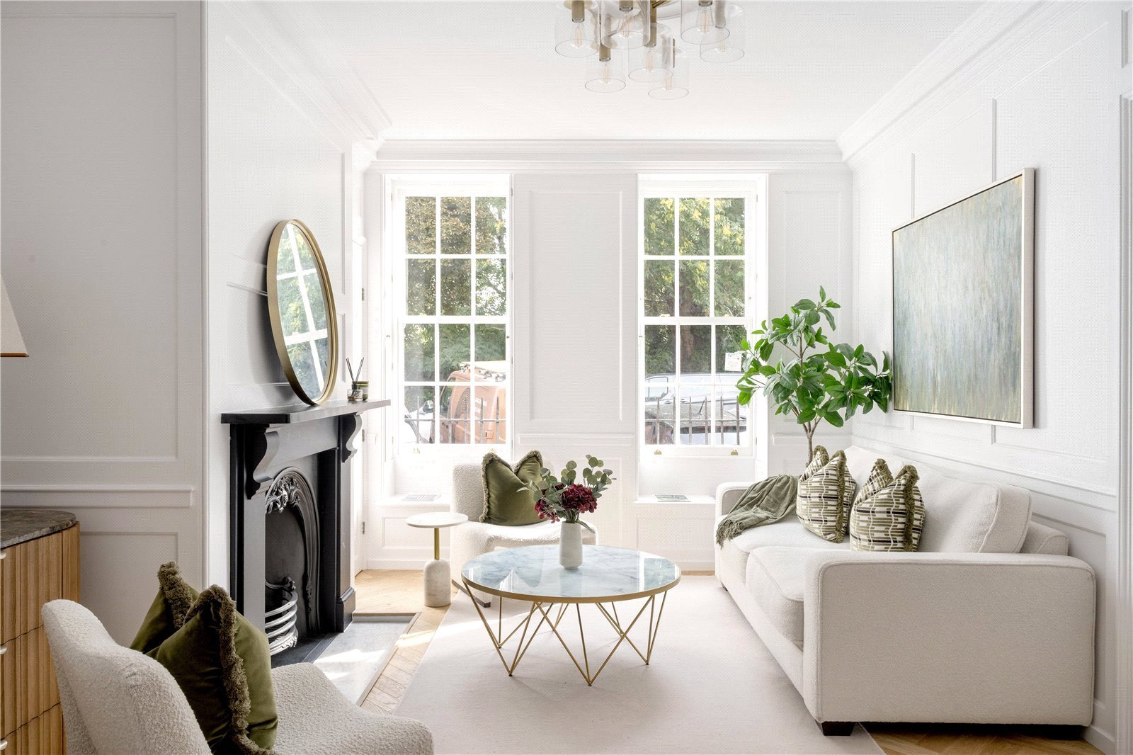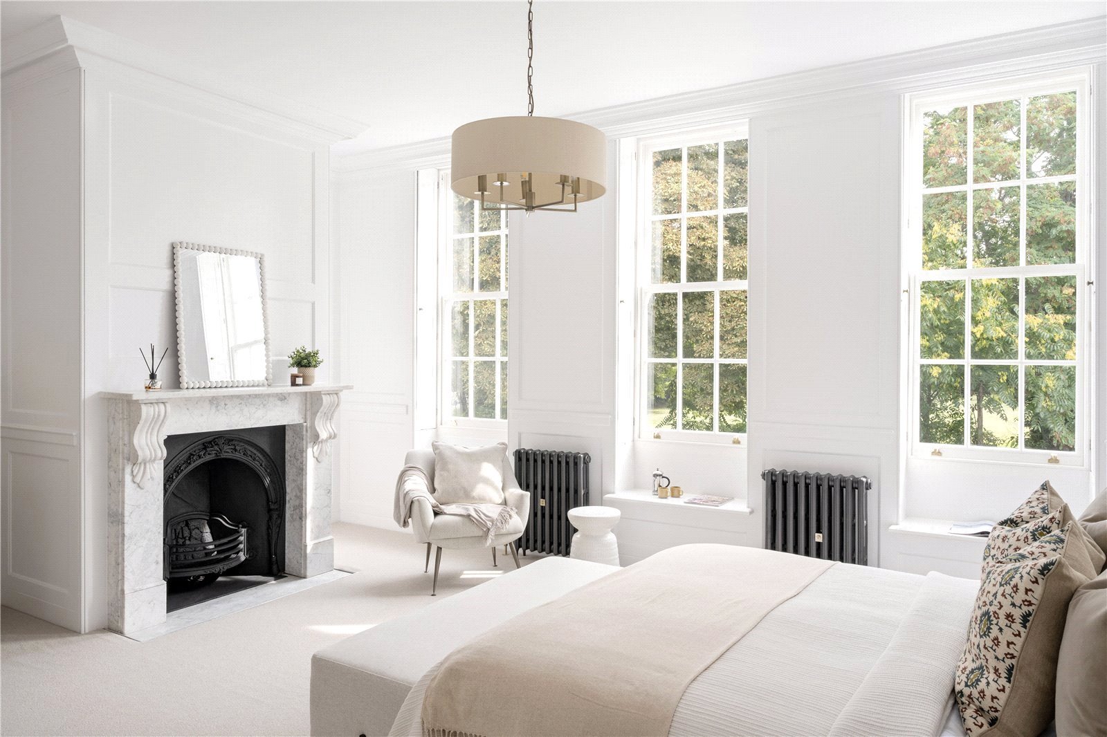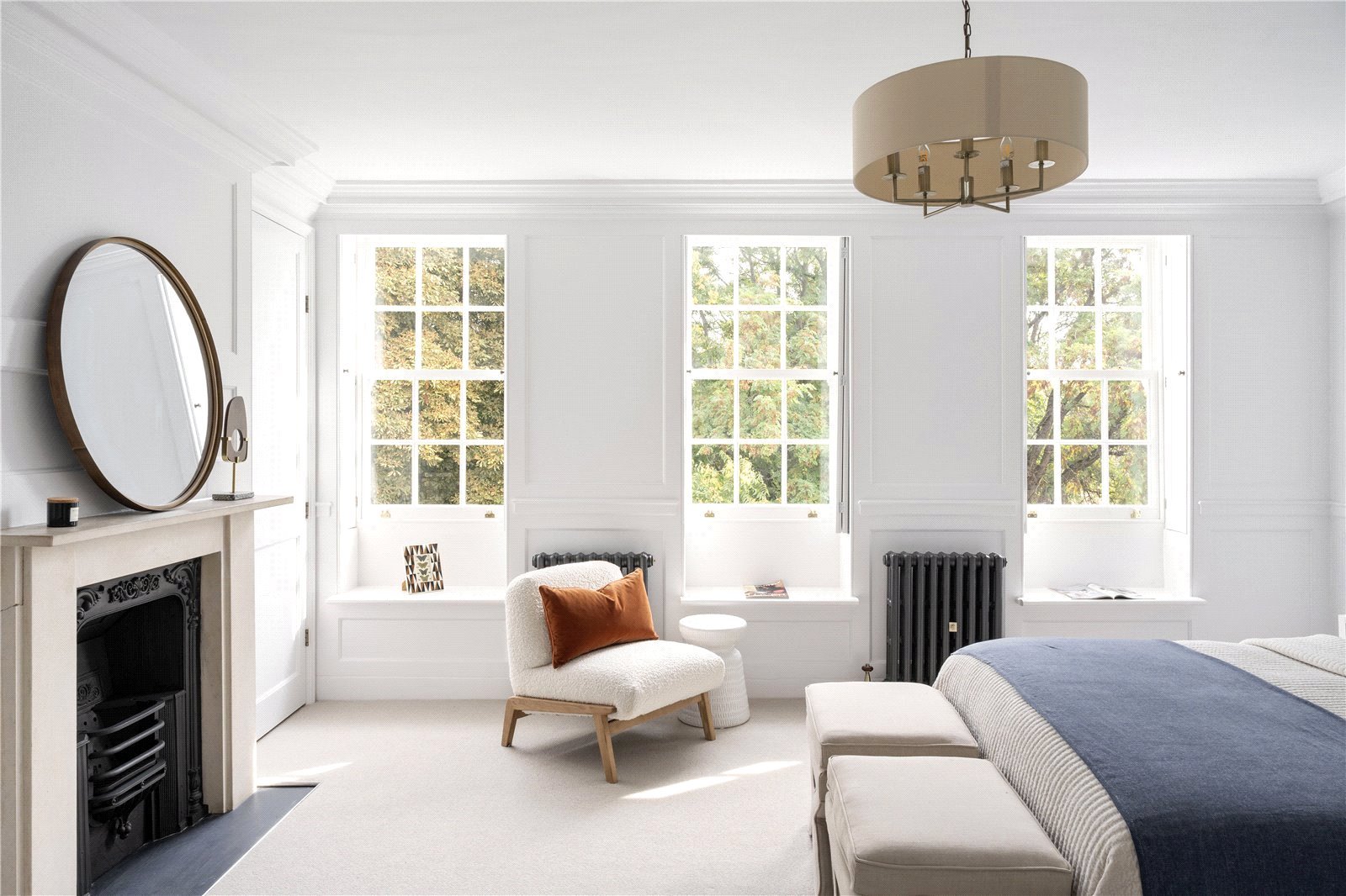 - Elegant Georgian features including high ceilings, tall sash windows, and original fireplaces