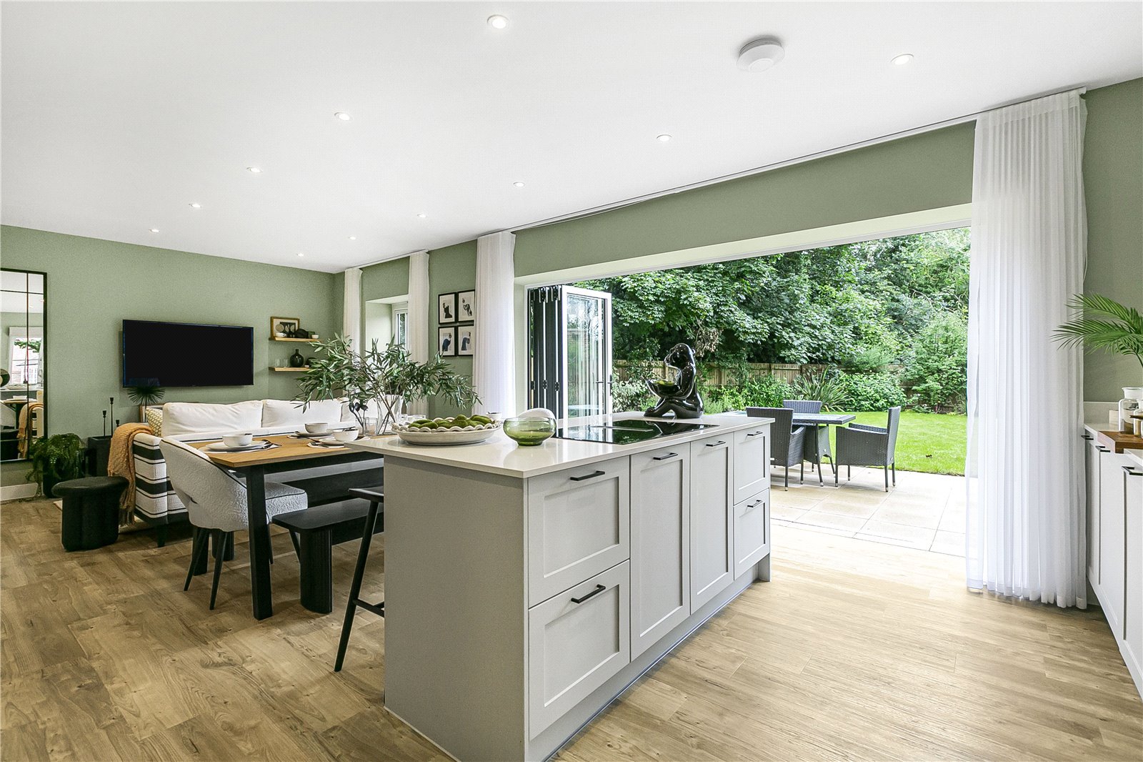 - Open-plan kitchen/living/dining room