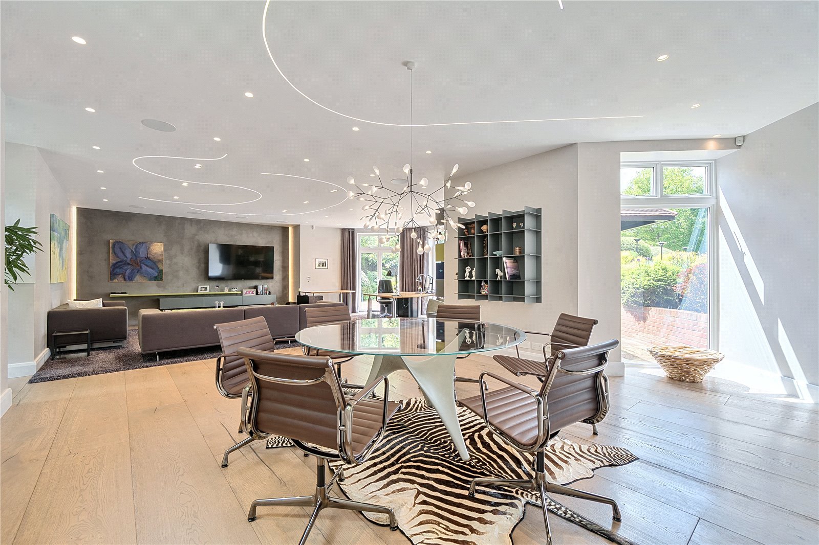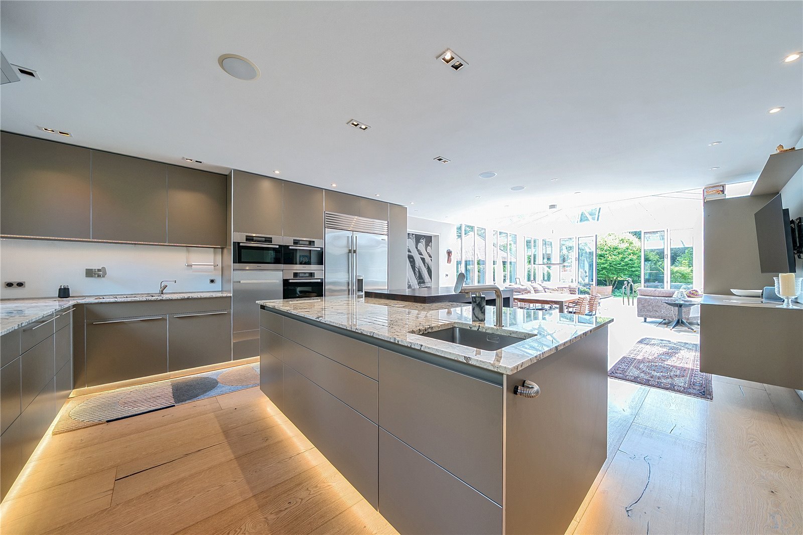 The main house flows over four versatile levels, offering up to five/six well-presented bedrooms with four bathrooms and is finished to a high specification including control 4 house automation. The ground floor comprises of two spacious reception rooms, a study and a modern fitted kitchen/dining room which flows seamlessly into a conservatory with bi-folding doors out on to the rear garden. The kitchen has a range of units, high end integrated appliances and a centre island. The ground floor is completed by a utility room, additional prep kitchen, laundry room, workshop and guest WC.