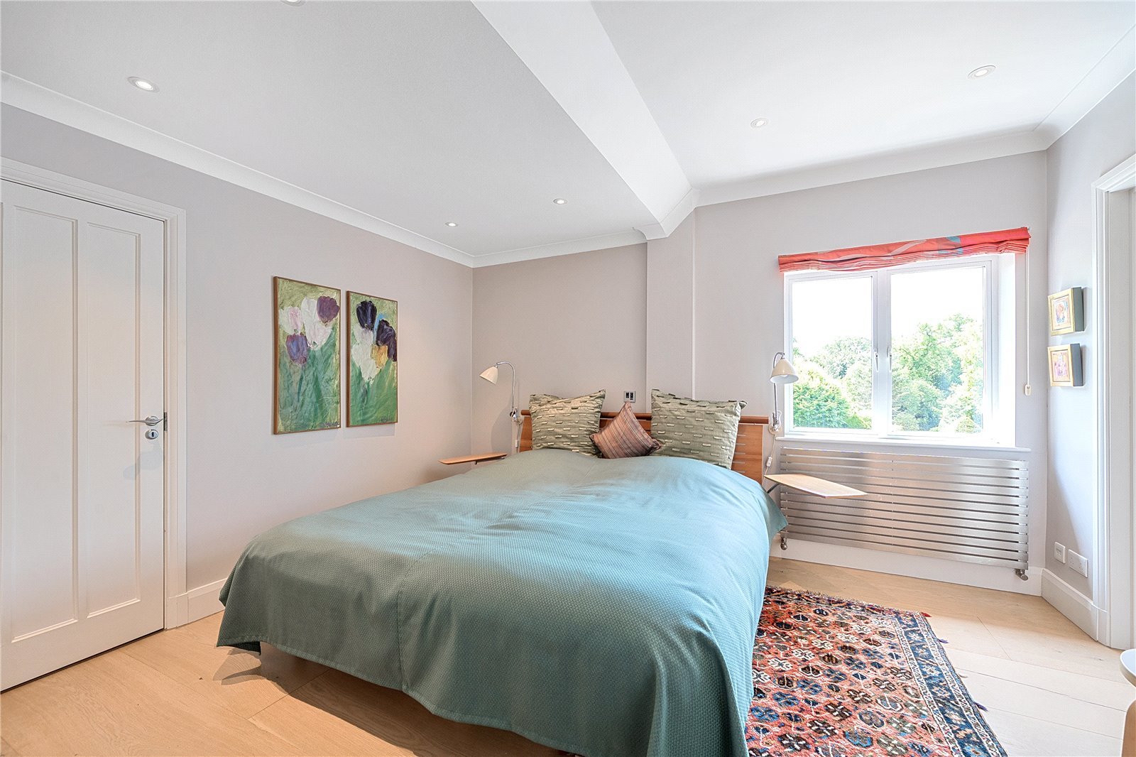 To the first floor is an inviting master bedroom with a balcony overlooking the rear garden, an en-suite with a feature free standing bath and a dressing gallery. There are two further bedrooms, a family bathroom and a gym/bedroom. A second dressing gallery gives access to two further split and identically created duplex rooms, with their own bathrooms and spiral staircases leading to the second floor. There is a lower ground floor which comprises a car garage, wine cellar and storerooms.